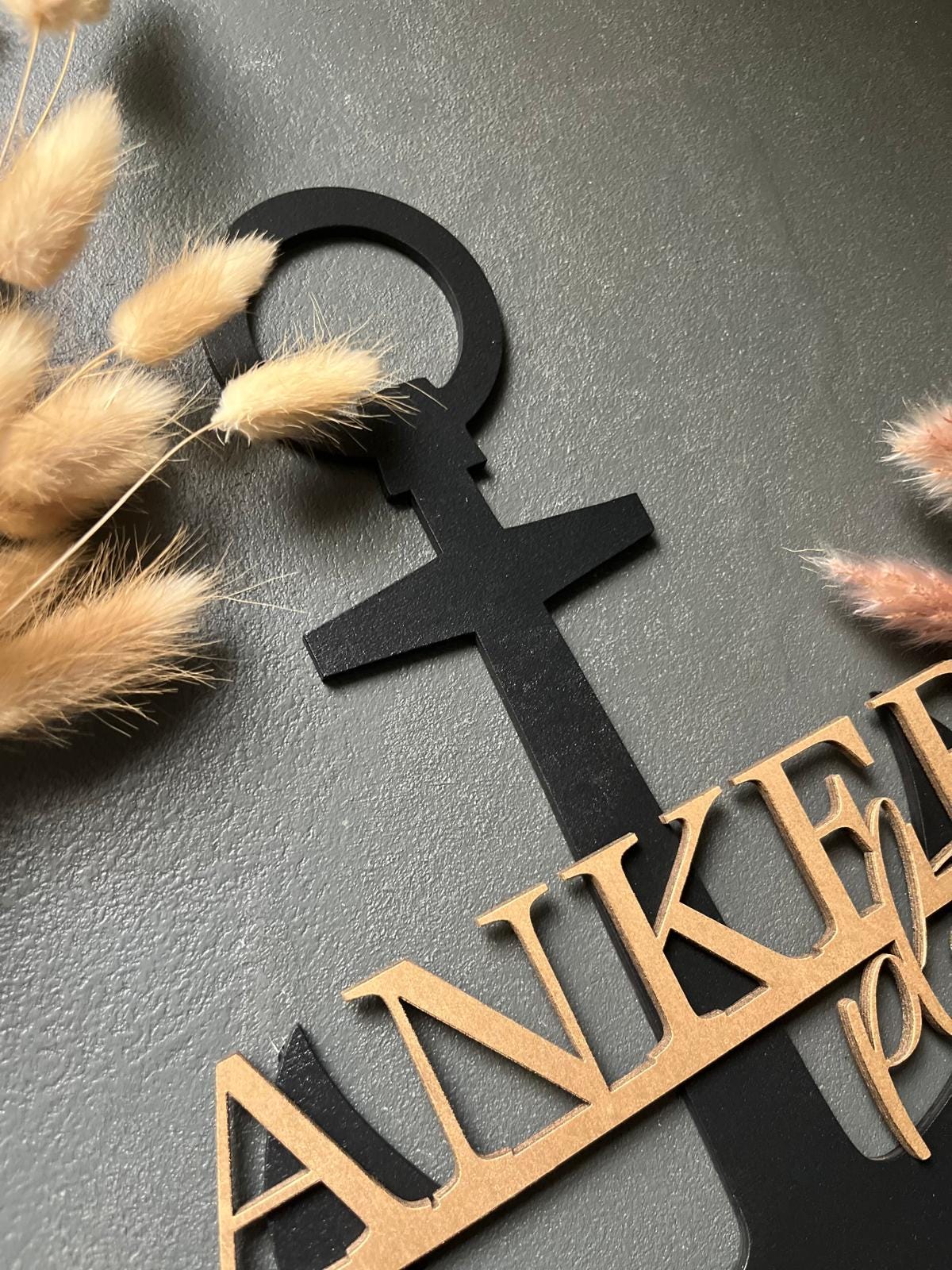 Durch die getrennte Gestaltung lassen sich Anker und Schriftzug farblich individuell anpassen – so entsteht ein persönlicher Akzent, der perfekt zu deinem Zuhause passt.