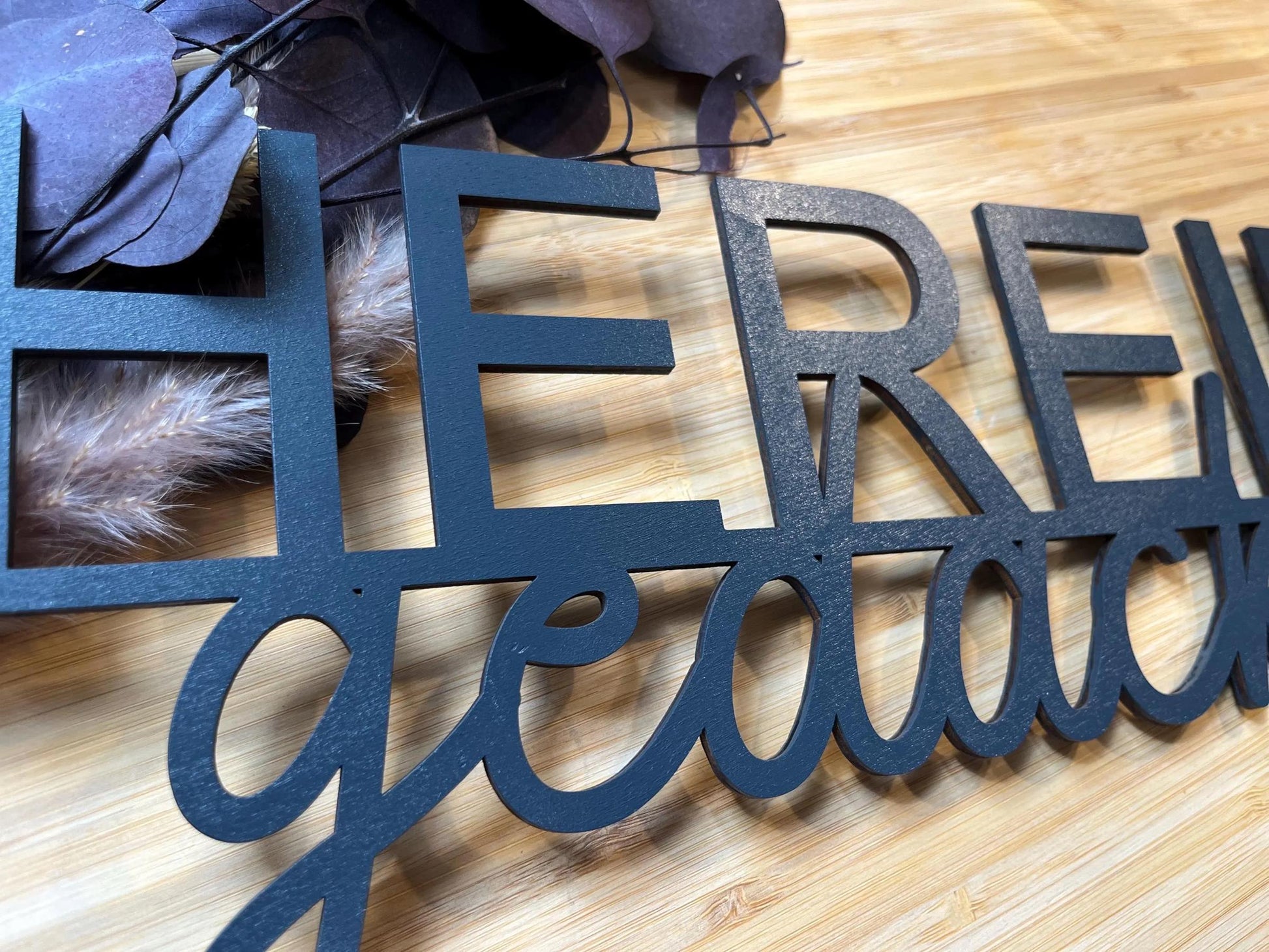 Der Schriftzug „Hereinspaziert“ ist ein charmantes Willkommen für dein Zuhause – modern, freundlich und ein echter Blickfang. Als stilvolle Wanddeko für Flur und Eingangsbereich sorgt er sofort für eine einladende Atmosphäre und passt perfekt zu Scandi-, Modern- und Landhausstil. Ideal, um Gäste mit einem Augenzwinkern zu begrüßen und deinem Eingangsbereich das gewisse Etwas zu geben – auch eine tolle Geschenkidee zum Einzug.