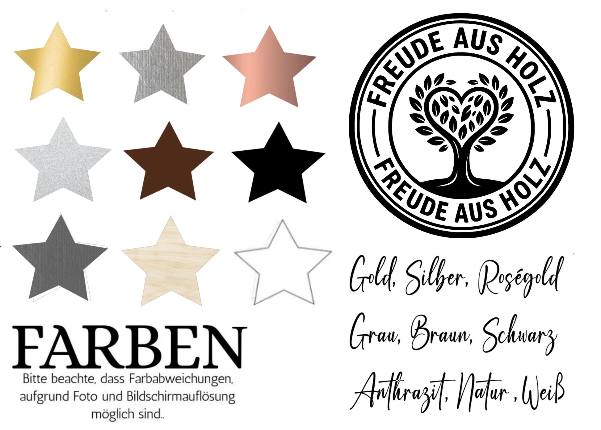 Durch den Laserschnitt können die Seiten/Kanten dunkler (braun/schwarz) ausfallen. Seiten und Rückseite bleiben bewusst naturbelassen und können leichte Schmauchspuren aufweisen. Das ist normal und nach Anbringung des Schriftzuges nicht mehr sichtbar, es stellt keinen Qualitätsmangel dar.