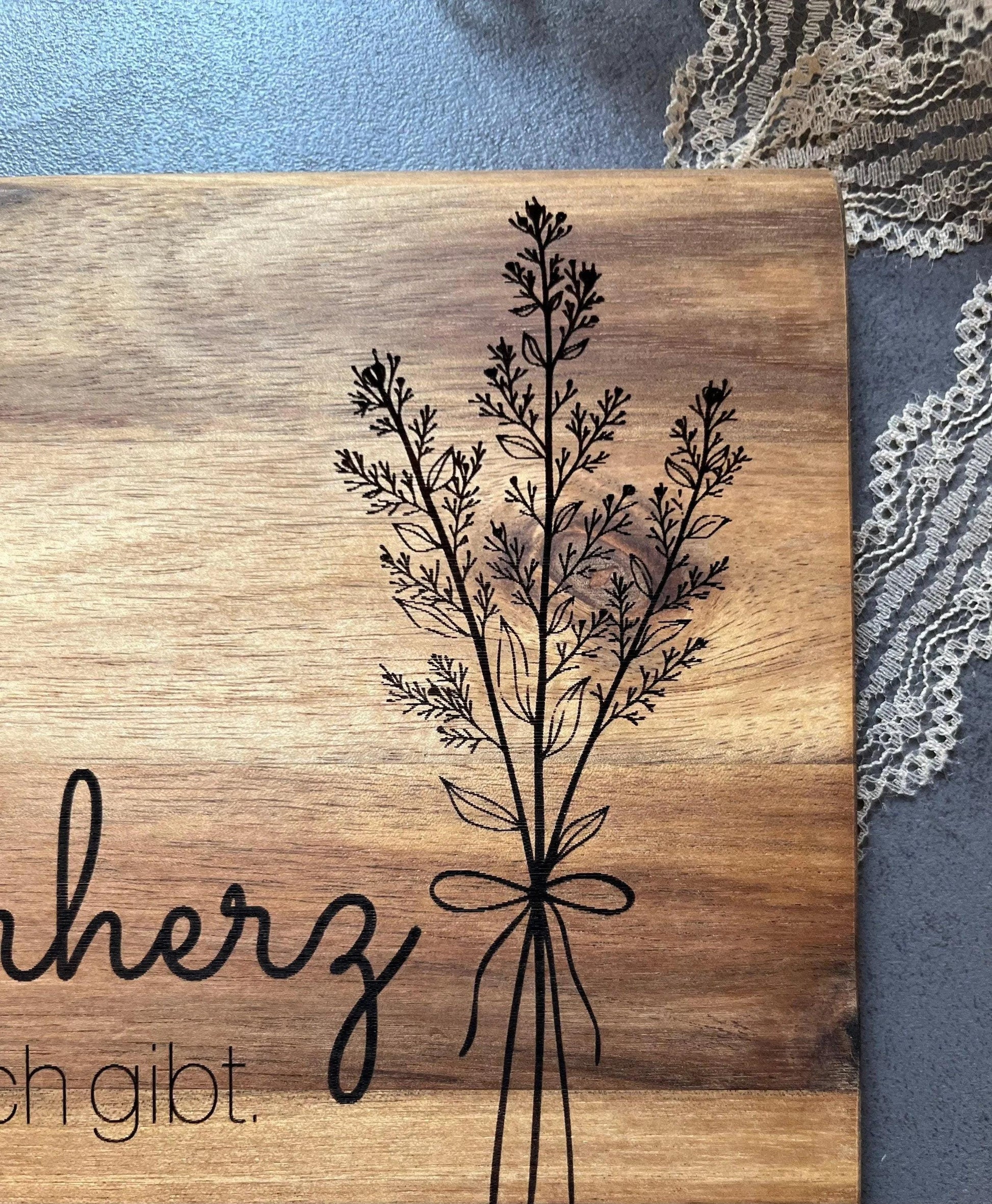 - Damit die Gravur lange schön bleibt: Die gravierte Seite eher als Servier-/Dekoseite nutzen und zum Schneiden die Rückseite verwenden.